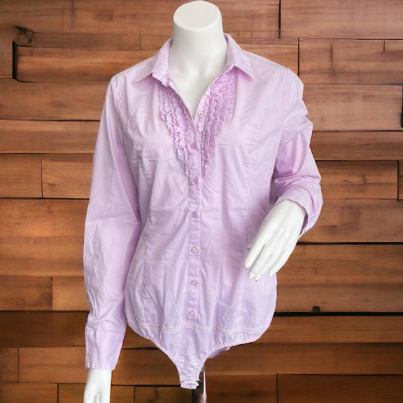 Galléros, eleje gombos, dekoltázsnál fodorral. Anyagában csíkozott, ülepnél patentos.