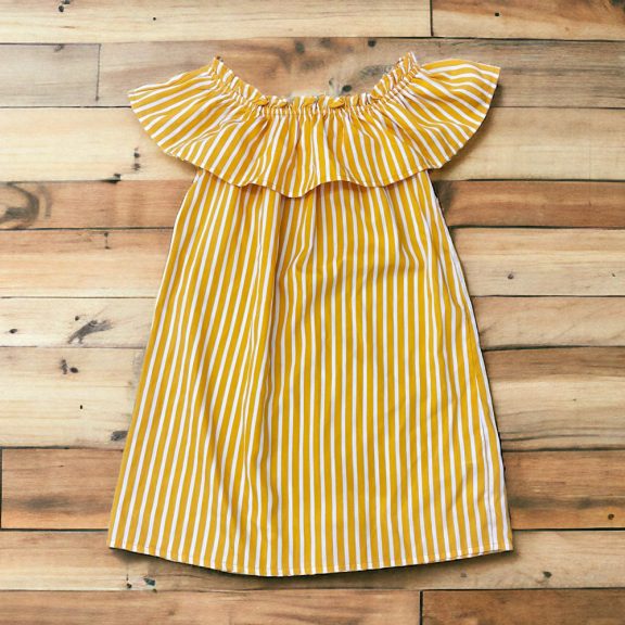 Csónak nyakú kivágássl , gumírozott, vékony nyári viselet.