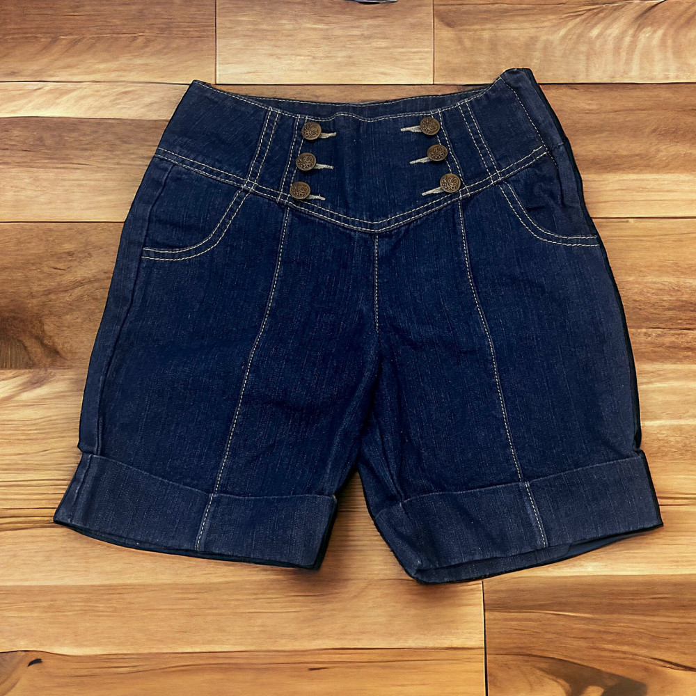 Díszgombos farmer rövidnadrág