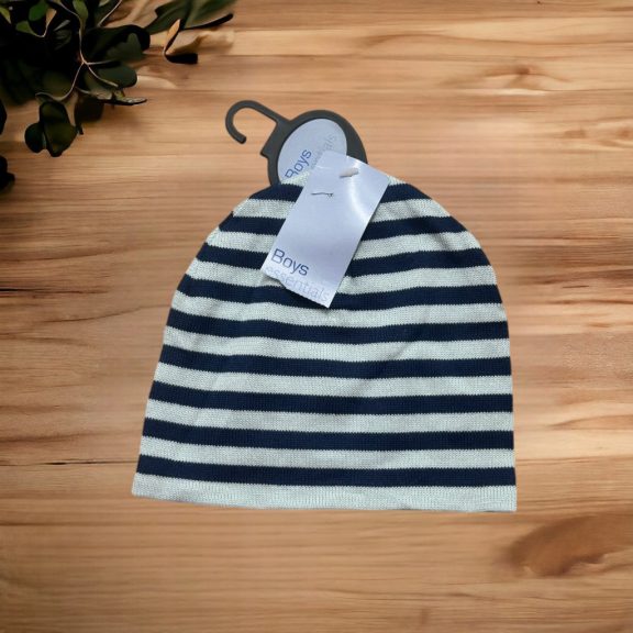 Kék csíkos, kötött sapka-Új