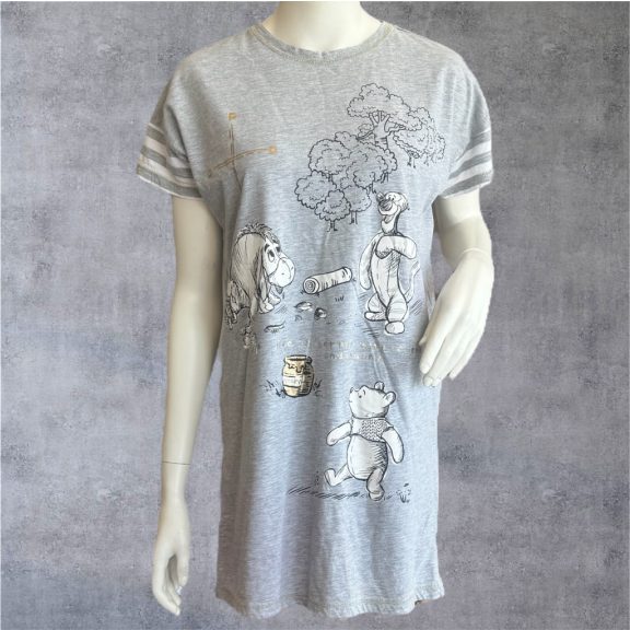 Egyenes szabású, kerek nyakkivágású, elején Micimackós mintával.