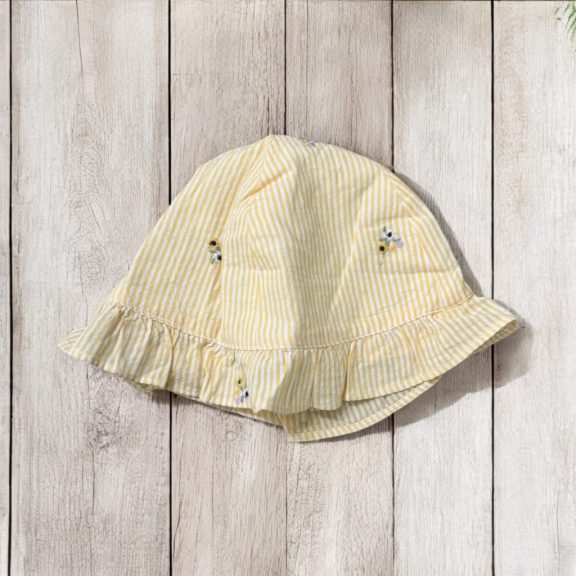 Sárga csíkos, virágos kalap