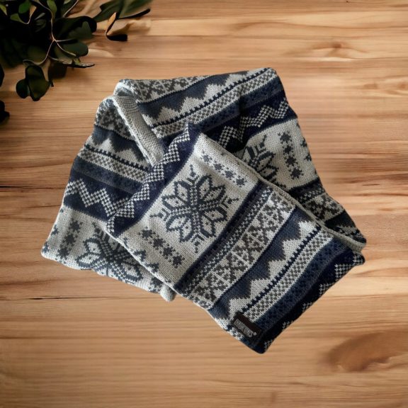 Szürke-kék kötött körsál