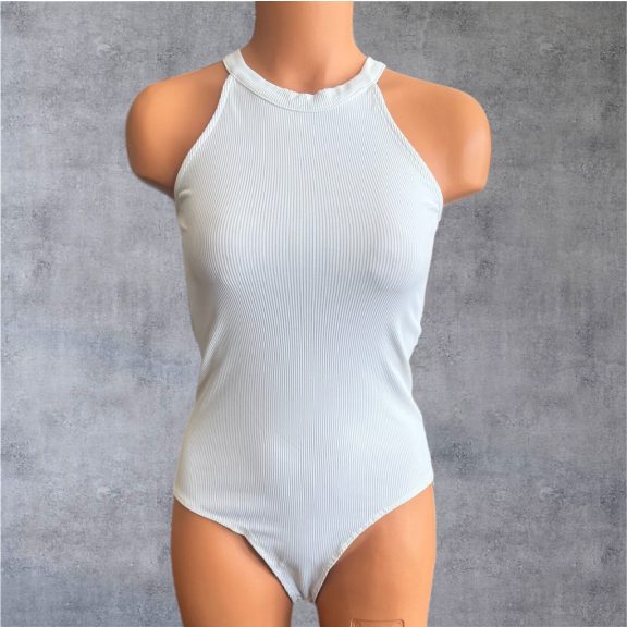 Nyakpántos, ülepnél patentos, rugalmas sztreccs anyag.