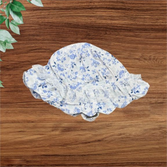 Kék virágos kiskalap, pántja tépőzáras.