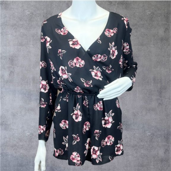 HIbátlan állapotú fekete alapon virágos playsuit.